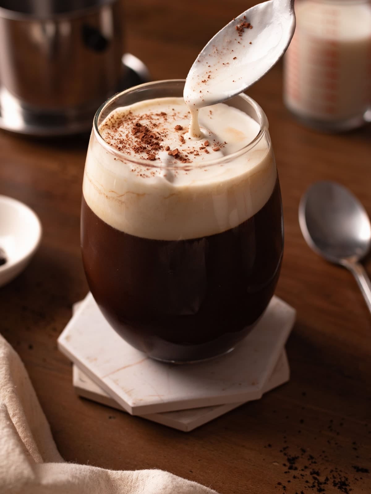 - Heavy Cream & Milk: This is the base of the cream foam. Vegan and dairy-free options are coconut cream and your fave non-dairy milk (coconut milk, cashew milk, oat milk, or almond milk).